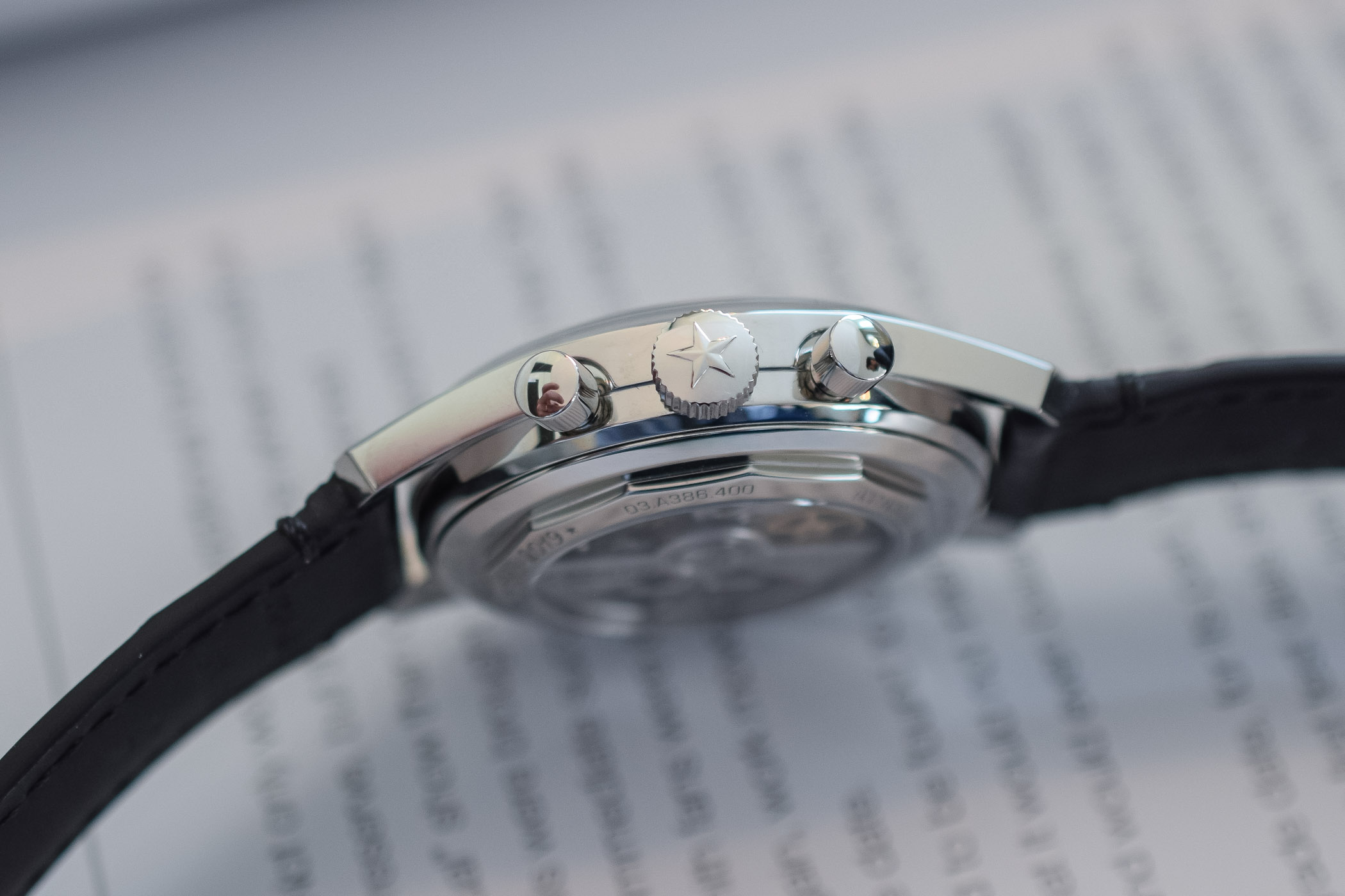 Turning over the watch you’ll discover a movement that is much more modern than the original El Primero, in design and finishing, even though still based on some parts of the 1969 calibre. This watch confirms that Zenith has serious pedigree when it comes to high-frequency watches… and it will soon be joined by a 1/1000th watch.