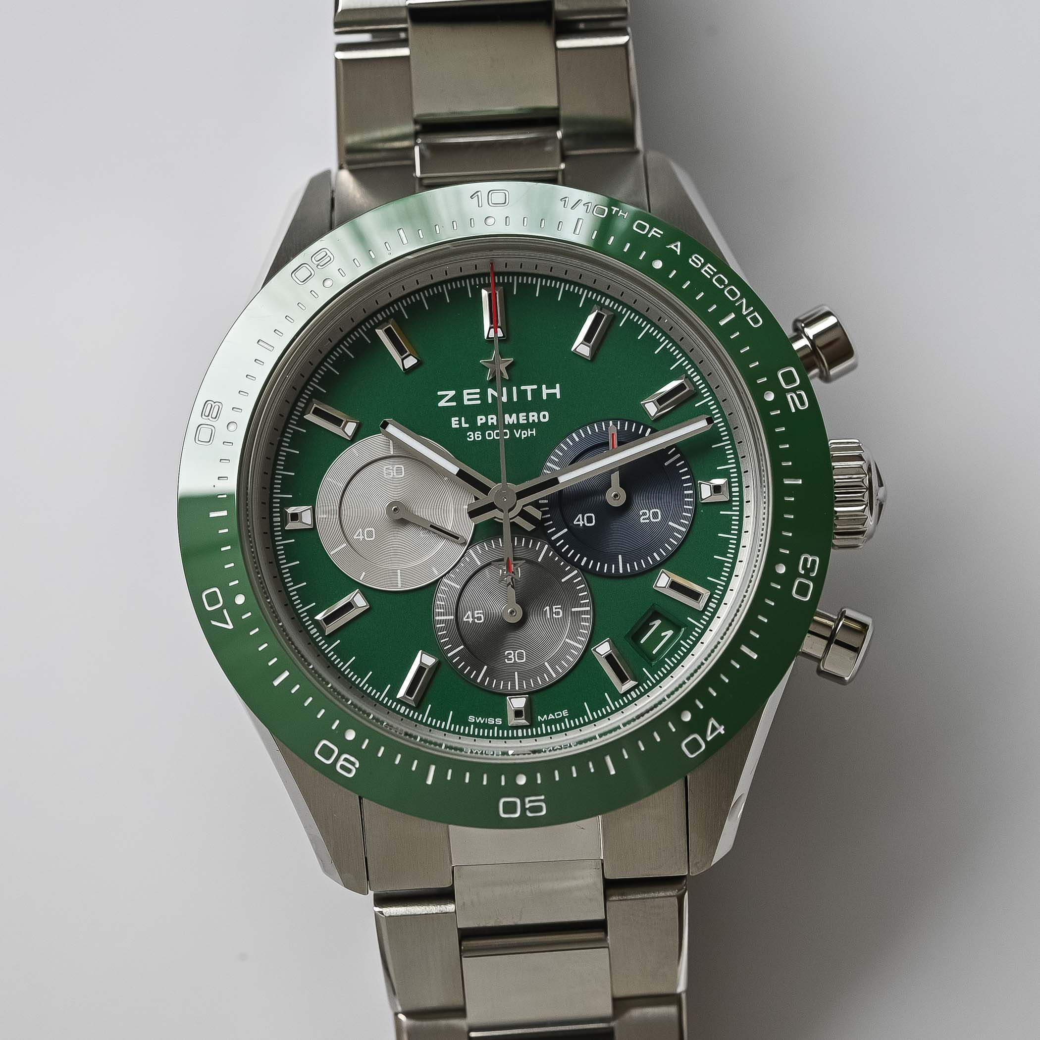 And here you have it… the new Zenith Chronomaster Sport Green is a truly captivating timepiece equipped with the successor to a legendary movement, offering exceptional value based on its technical merits. My initial reaction to the announcement of a permanent-collection green Chronomaster Sport underwent a significant transformation once I had the opportunity to handle the watch. The green hue complements the model remarkably well, especially accentuated by the green ceramic bezel – a stainless steel alternative would have detracted from the overall image.
