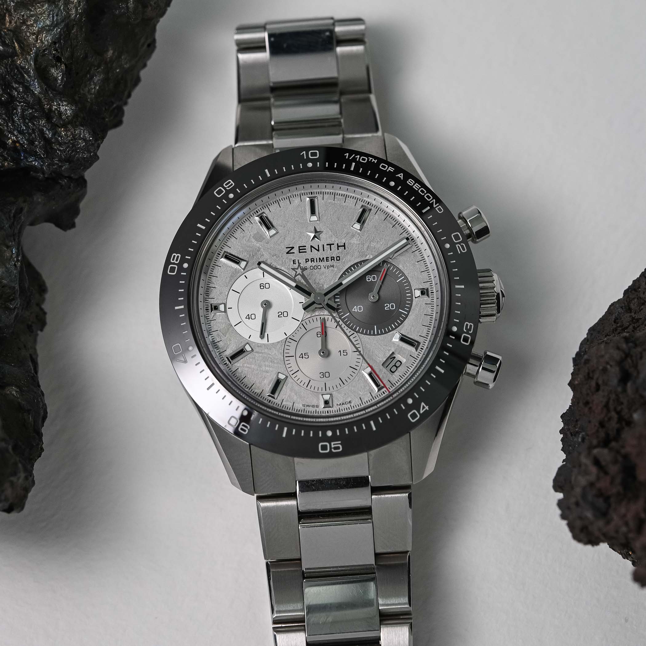 Presented on a steel bracelet with brushed and polished links, fastened by a double-folding clasp, as well as an additional black rubber strap with a matching clasp, the Zenith Chronomaster Sport Meteorite, once a Japan-exclusive model, is now available worldwide, through Zenith boutiques (in-store and online) and authorised retailers. It is priced at CHF 16,900 or EUR 18,300.