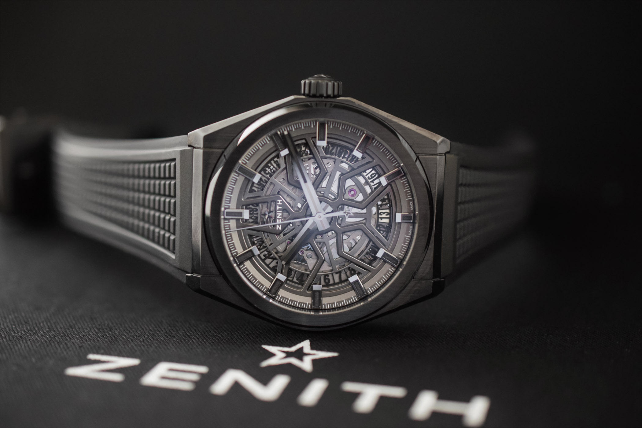 Zenith’s Defy collection, relaunched during Baselworld 2017 with the high-beat chronograph Defy El Primero 21 and the equally mind-blowing Defy Lab 3 and Defy Zero-G, is gaining traction by the day. The Defy Classic collection puts aside some of the technical fireworks to position itself as the brand’s entry-level luxury sports watch. We’ve already seen the Defy Classic in various outfits, including the recently launched Defy Classic Skeleton Range Rover Edition. The latest proposal from Zenith is this dark, dark model with a black ceramic case.