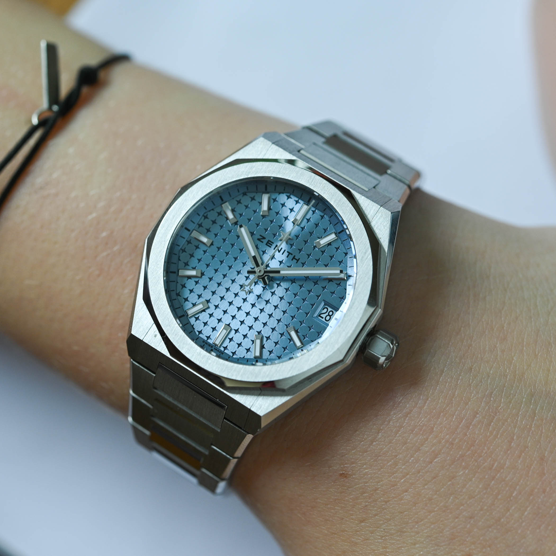 It’s official; the summer season kicked off over a week ago, and if any of our readers live in Spain, you will have experienced the dramatic surge in temperature. In Andalucia, temperatures have reached 44.4°C, and here in Madrid, we are dealing with 38°C today. Excuse the odd meteorological introduction, but with such searing temperatures, the antidote, horologically speaking, is a watch with a chilled icy blue dial that conjures visions of cool pools of water. Like fashion collections, many watch brands have jumped on the seasonal bandwagon, and ice blue is fast positioning itself as the colour of summer for 2023. Audemars Piguet’s Royal Oak, Bell & Ross’ BR 05 GMT, Omega’s Aqua Terra and Tissot’s PRX have taken the plunge with very pleasing results, and now Zenith dives into icy blue waters with three new renditions of its Defy Skyline.