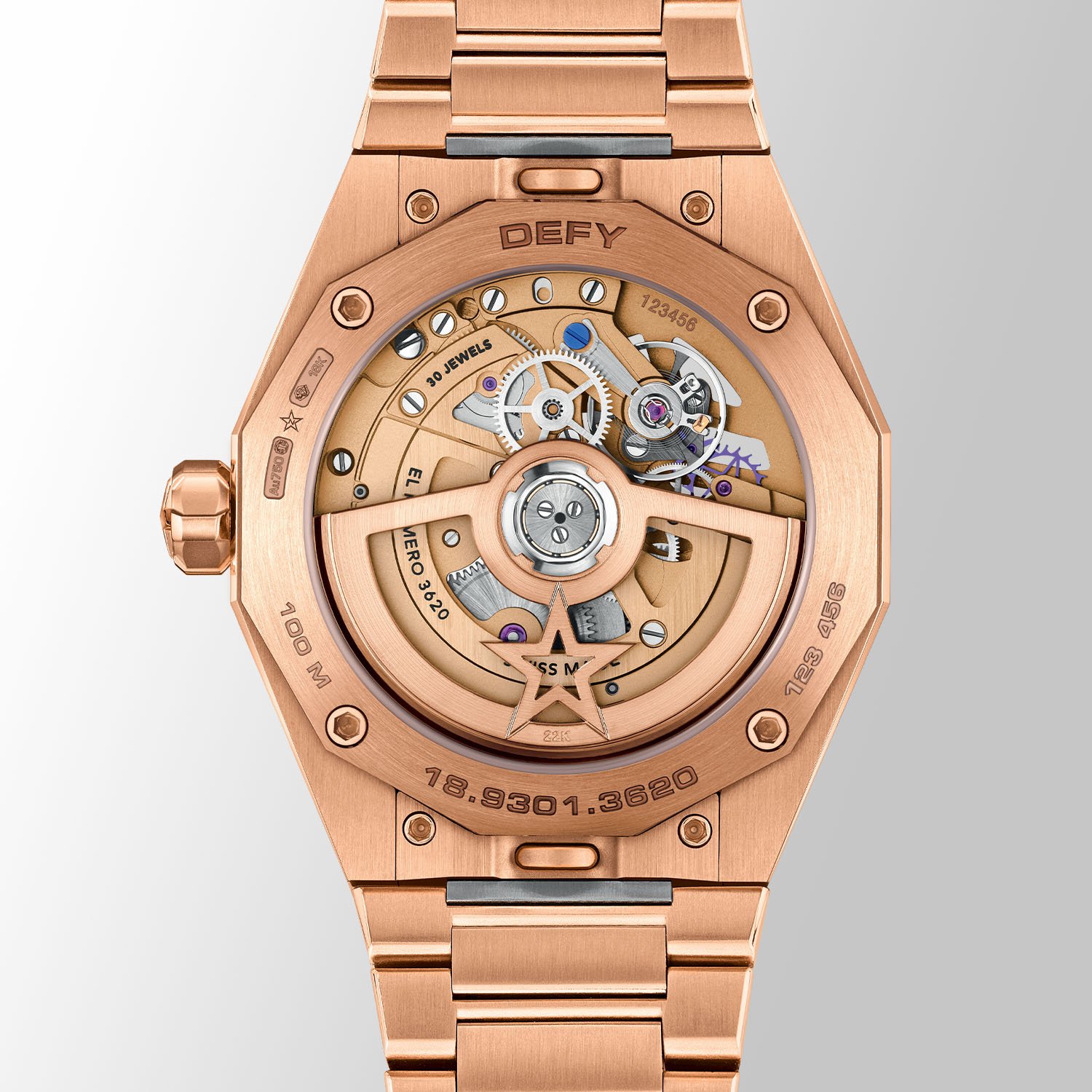 Quick facts: 41mm x 11.6mm – lug-to-lug 46.3mm – 18k rose gold case, brushed with polished accents – screw-down crown – 100m water-resistance – openworked dial with rose gold bridges – 1/10th of a second indication at 6 o’clock – indices and hands coated with SLN C1 – integrated rose gold H-link bracelet, additional black rubber strap included – El Primero 3620 SK – in-house – automatic – 5Hz frequency (36,000vph) – 55h power reserve – hours and minutes, 1/10th of a second indication at 6 o’clock, stop-seconds function – ref. 18.9300.3620/81.I001 – CHF 61,900 / EUR 67,100 / USD 64,200