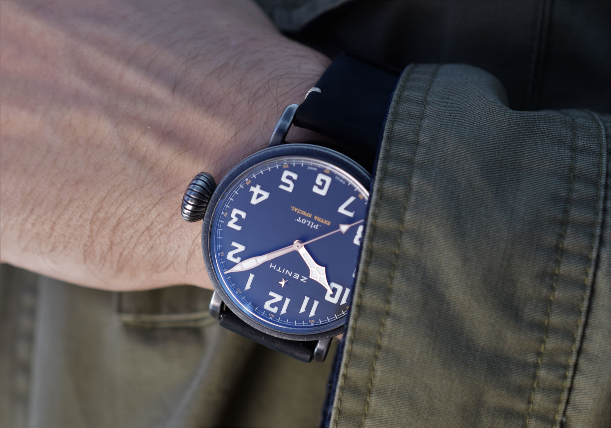 Introduced a few years ago, the Zenith Pilot Type 20 is a tribute to the brand’s rich aviation history. Among other highlights, in 1909, the French aviator Louis Bleriot became the first man to fly across the English Channel and did so with a Zenith watch strapped on his wrist. Zenith subsequently crafted an array of pilot watches and cockpit instruments. In the 1960s, the brand supplied chronographs to the Italian Air Force through a Roman dealer, Cairelli.