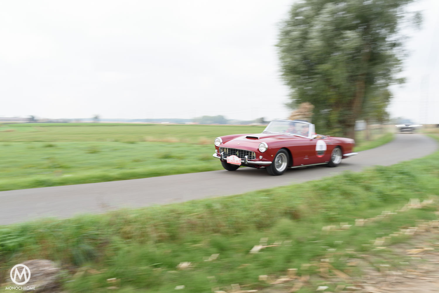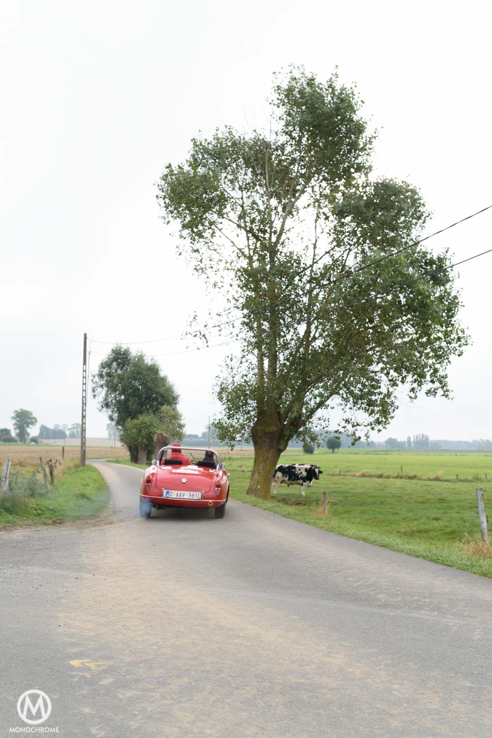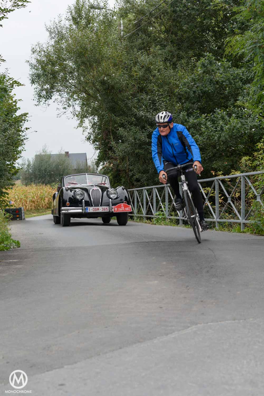 The drivers leave the boulevard one by one with intervals of a couple of minutes. A tracking device that is attached to the car constantly monitors their position and average speed. Besides breaks and checks it is driving, getting frustrated when taking a wrong turn or when a small accident blocks the road, being happy if you are still on the right track, and enjoying the scenery. It is an absolute joy to drive in a classic (performance) car on a beautiful day in the beautiful landscape of West Flanders. Driving in a classic car in the country-side gives an immense sense of freedom and joy that cannot be matched otherwise.